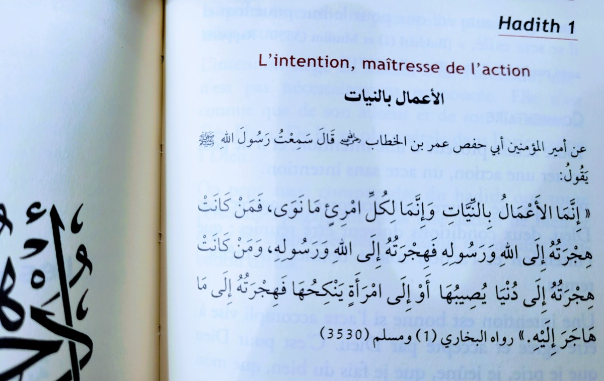 « Les actions ne valent que par leurs intentions. Ainsi, l’exil accompli pour Allah et Son Envoyé, sera compté comme pour Allah et son Envoyé. Et l’exil accompli en vue de l’obtention d’un bien terrestre ou dans le but d’épouser une femme, ne sera rétribué que pour le but qu’il aura poursuivi. »